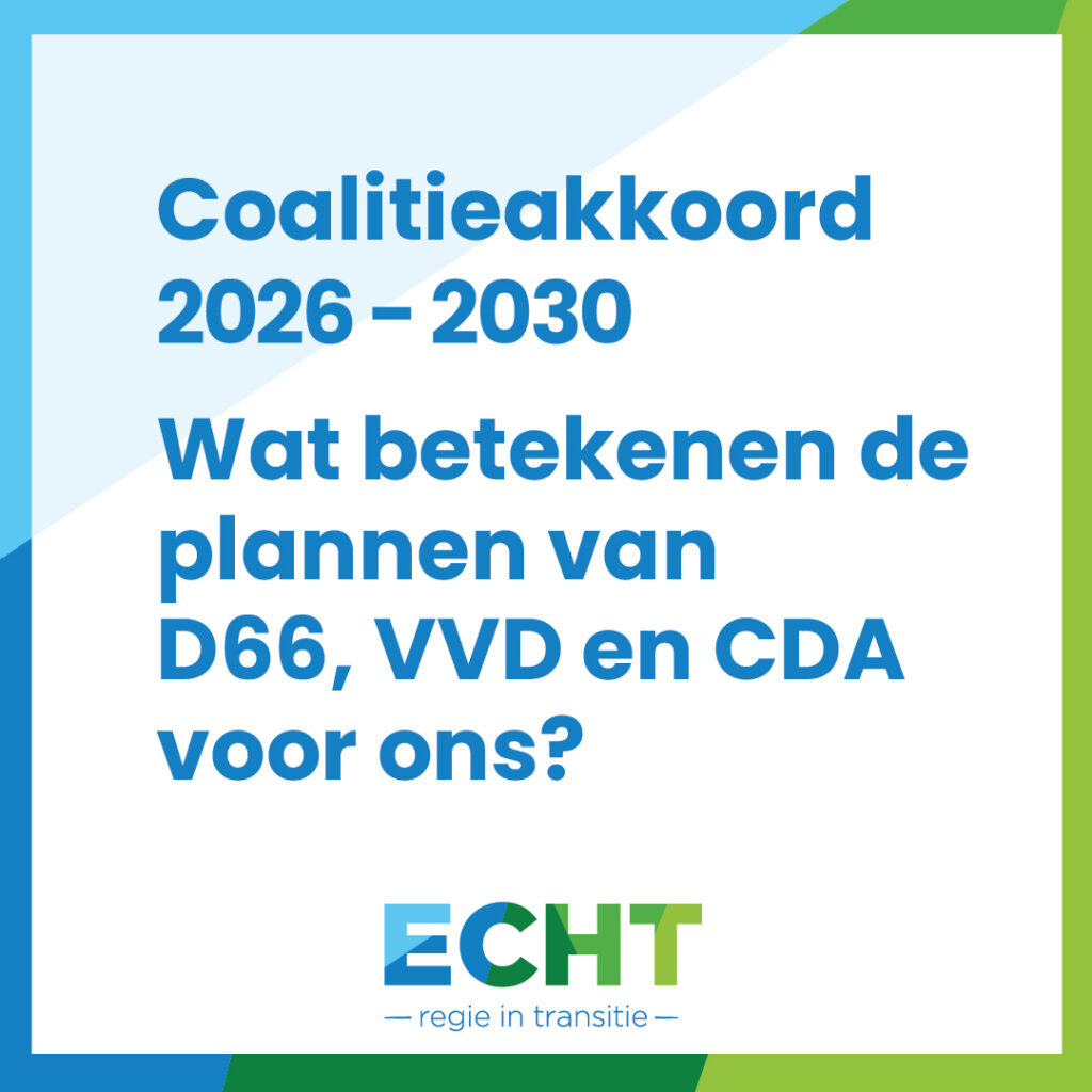 Deze aanpak is niet langer “nice to have”; het is de kern van hoe projecten worden beoordeeld, goedgekeurd en gerealiseerd in een juridisch en economisch complexe transitieomgeving. De ECHT groep en ECHT regie in transitie zal vanuit haar diverse projecten en activiteiten verder bijdragen aan een toekomstbestendig (energie)systeem en deze uitgangspunten en zoekt daarin altijd naar waardevolle en effectieve samenwerkingskansen met partijen uit overheid, markt, wetenschap en andere disciplines. Behoefte om hier eens over door te spreken met ons? We gaan graag met je in gesprek hierover